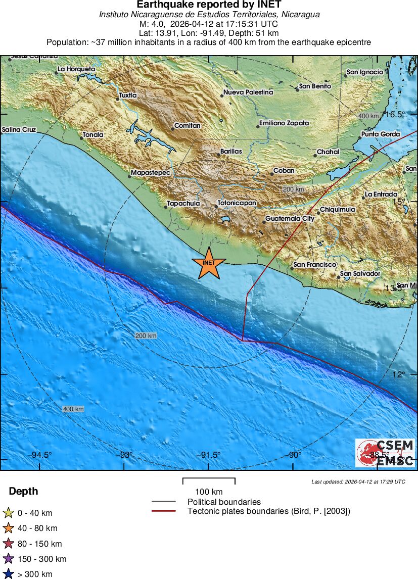 | 4 | 51 | 8409 | 03:15 | Link | Terremoto leve - OFFSHORE GUATEMALA - Hoje |