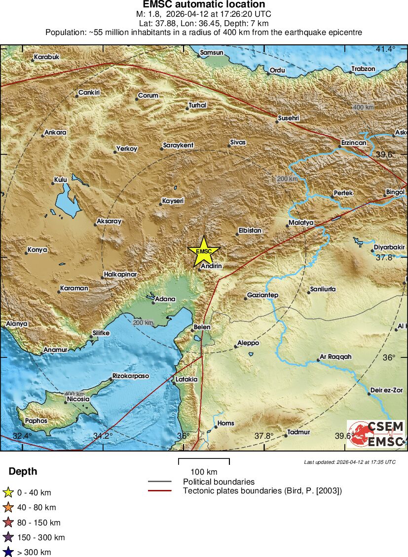 | 1.8 | 7 | 8897 | 03:26 | Link | Terremoto menor - CENTRAL TURKEY - Hoje |