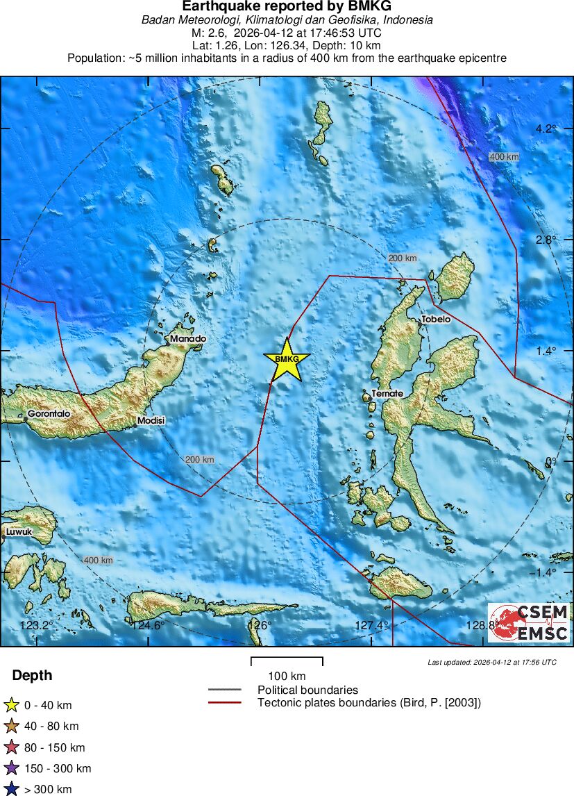 | 2.6 | 10 | 3254 | 03:46 | Link | Terremoto menor - MOLUCCA SEA - Hoje |