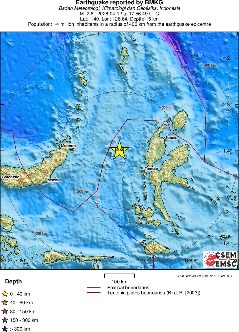 | 2.6 | 15 | 3255 | 03:56 | Link | Terremoto menor - MOLUCCA SEA - Hoje |