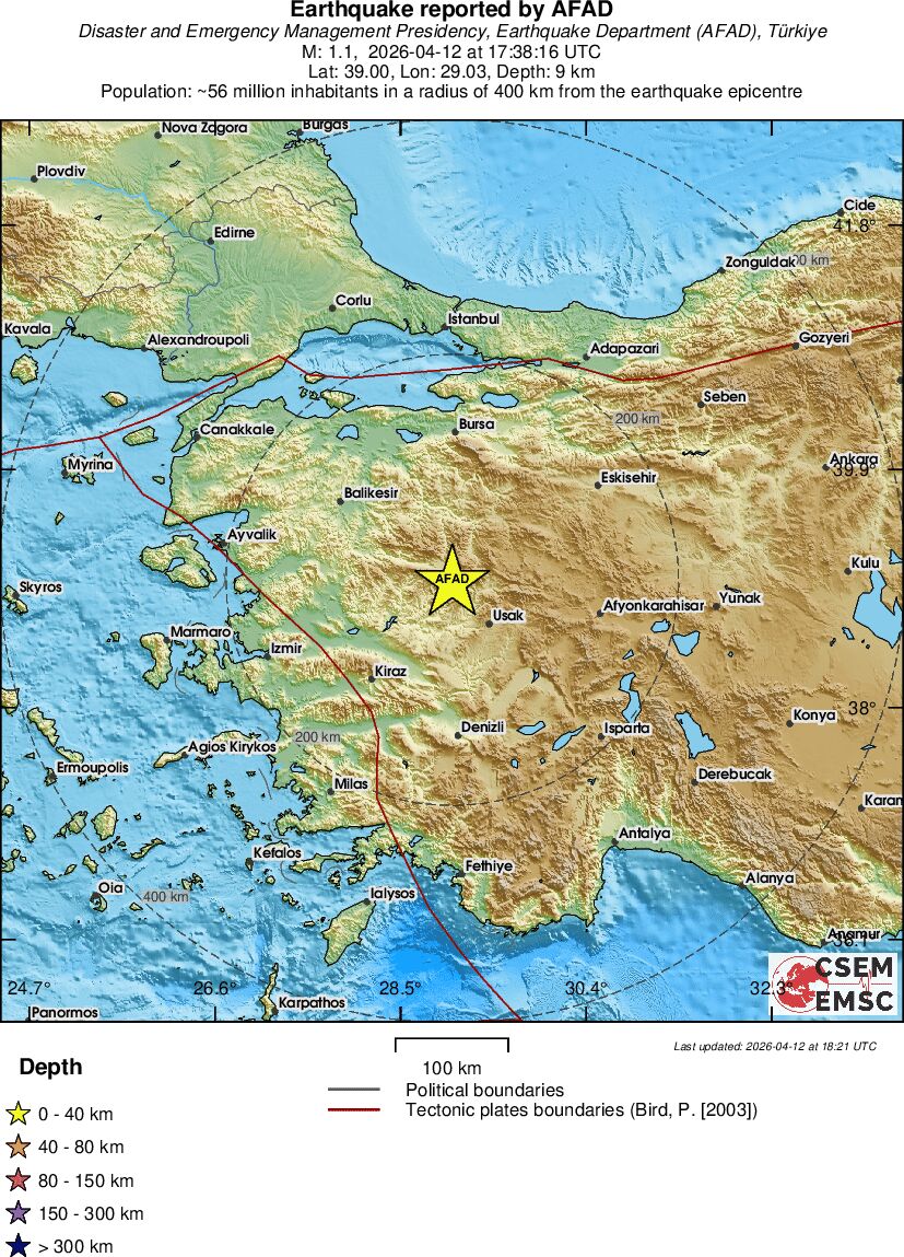 | 1.1 | 9.3 | 9294 | 03:38 | Link | Terremoto menor - WESTERN TURKEY - Hoje |