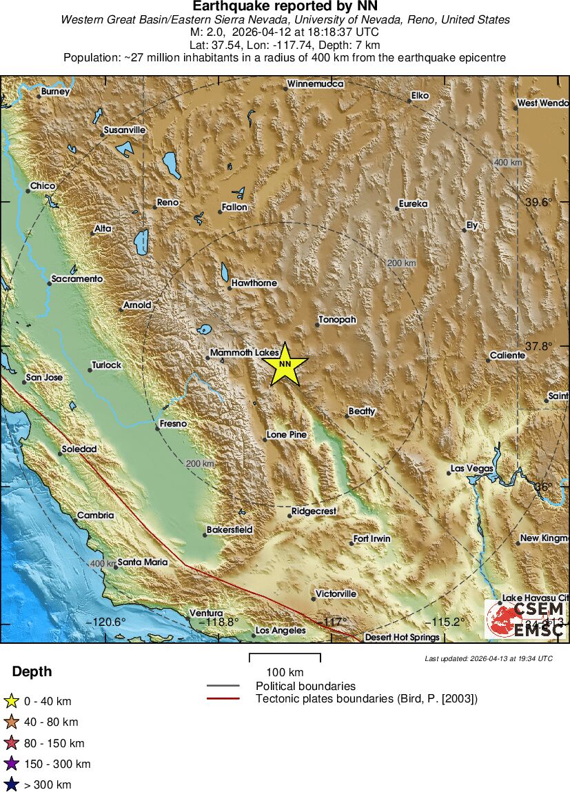 | 2.1 | 3.8 | 8043 | 04:18 | Link | Terremoto menor - NEVADA - Hoje |