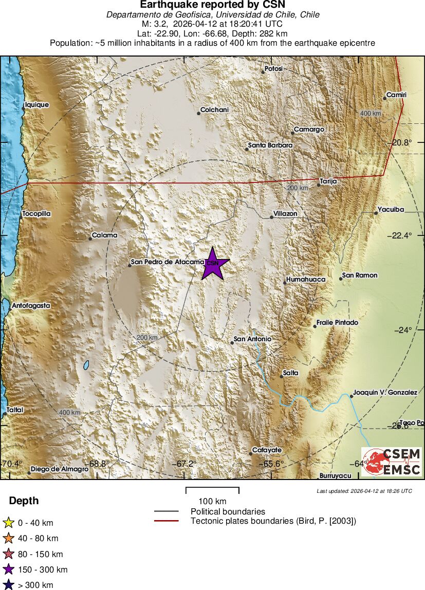 | 3.2 | 281.8 | 7460 | 04:20 | Link | Terremoto menor - JUJUY, ARGENTINA - Hoje |