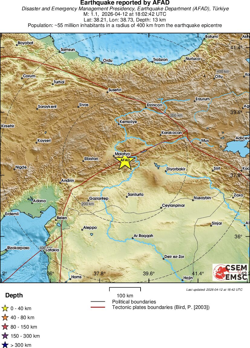 | 1.1 | 13.1 | 8797 | 04:02 | Link | Terremoto menor - EASTERN TURKEY - Hoje |