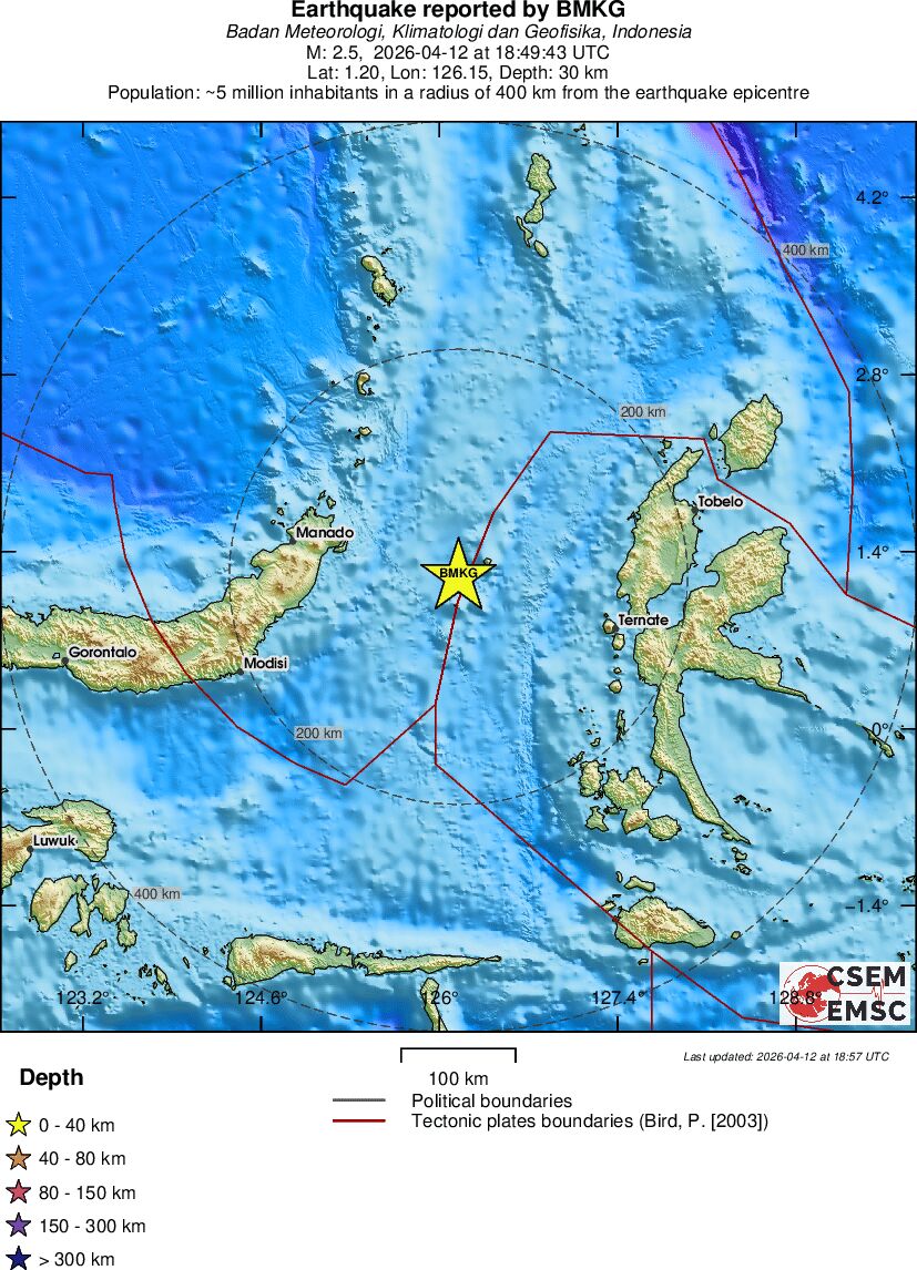 | 2.5 | 30 | 3255 | 04:49 | Link | Terremoto menor - MOLUCCA SEA - Hoje |