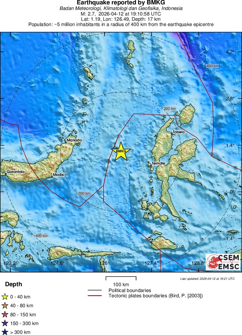| 2.7 | 17 | 3245 | 05:10 | Link | Terremoto menor - MOLUCCA SEA - Hoje |