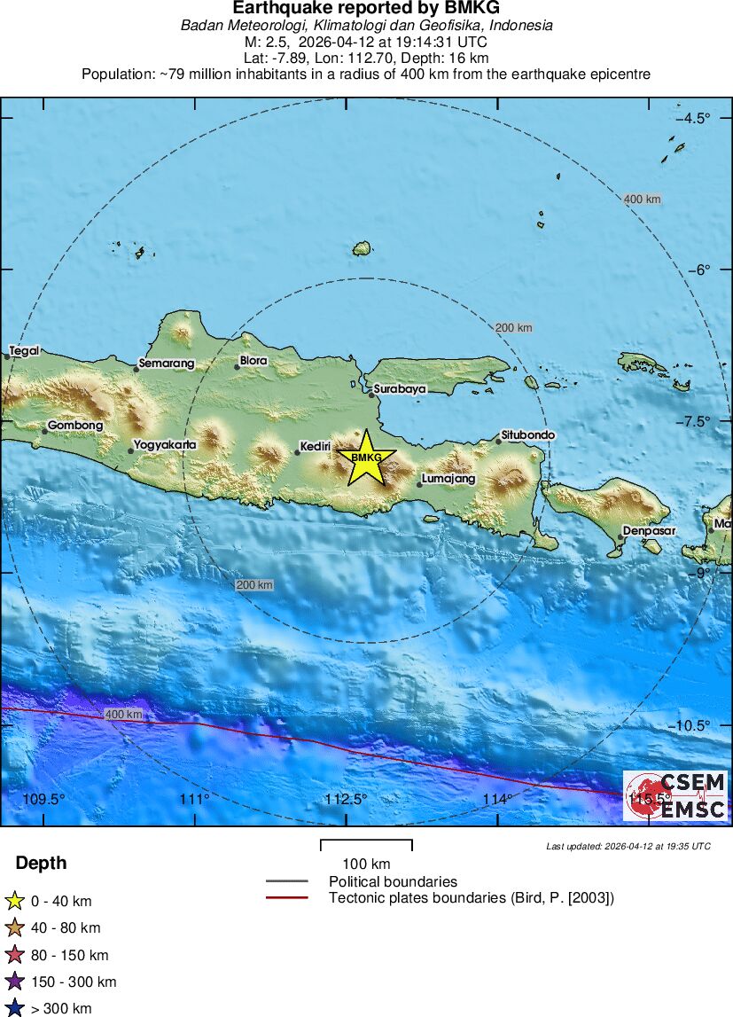 | 2.5 | 16 | 3177 | 05:14 | Link | Terremoto menor - JAVA, INDONESIA - Hoje |