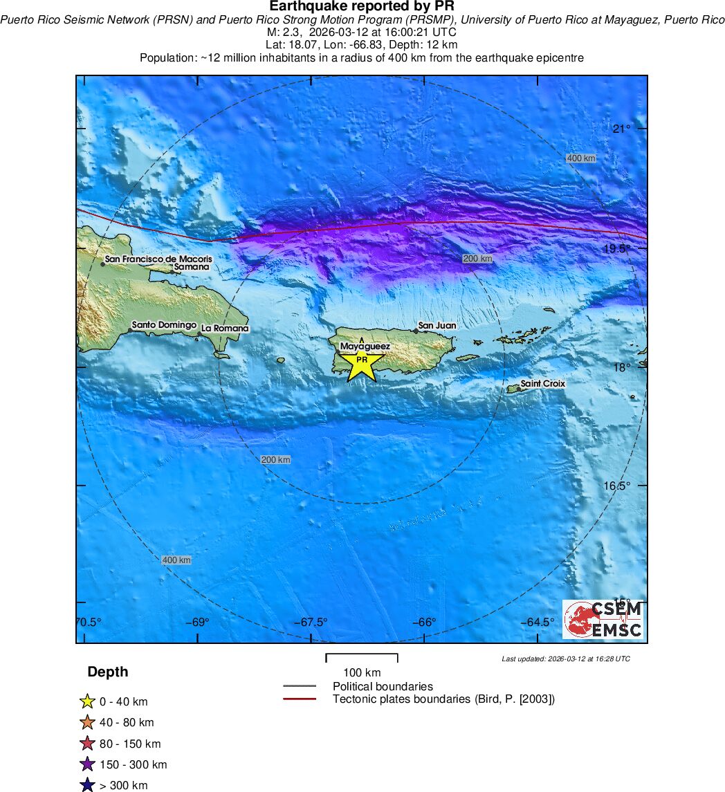 | 2.3 | 11.9 | 9814 | 03:00 | Link | Mindre jordskælv - PUERTO RICO - I dag |