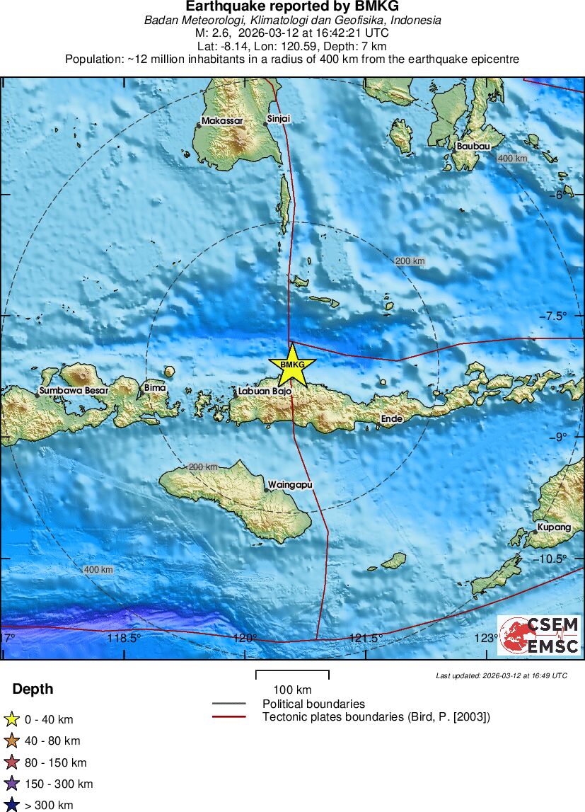 | 2.7 | 15 | 3200 | 02:47 | Link | Mindre jordskælv - SOUTH OF JAVA, INDONESIA - I dag |