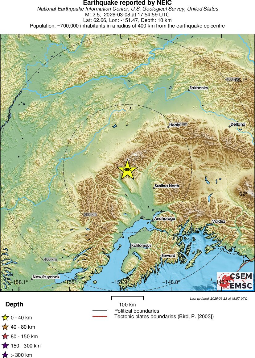 | 2.5 | 12.5 | 12747 | 04:54 | Σύνδεσμος | Μικρός σεισμός - CENTRAL ALASKA - σήμερα |