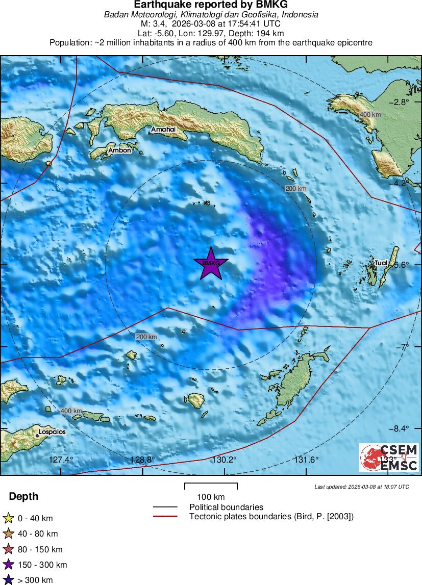 | 3.4 | 194 | 4378 | 04:54 | Σύνδεσμος | Μικρός σεισμός - BANDA SEA - σήμερα |