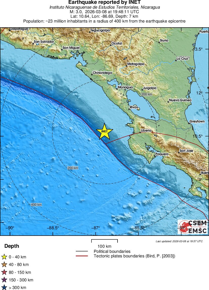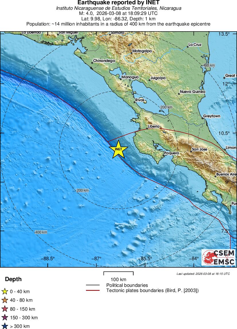 | 3.9 | 1 | 13661 | 05:09 | Σύνδεσμος | Μικρός σεισμός - OFF COAST OF COSTA RICA - σήμερα |