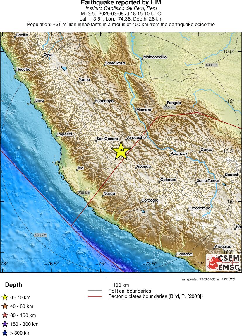 | 3.5 | 26 | 12502 | 05:15 | Σύνδεσμος | Μικρός σεισμός - CENTRAL PERU - σήμερα |