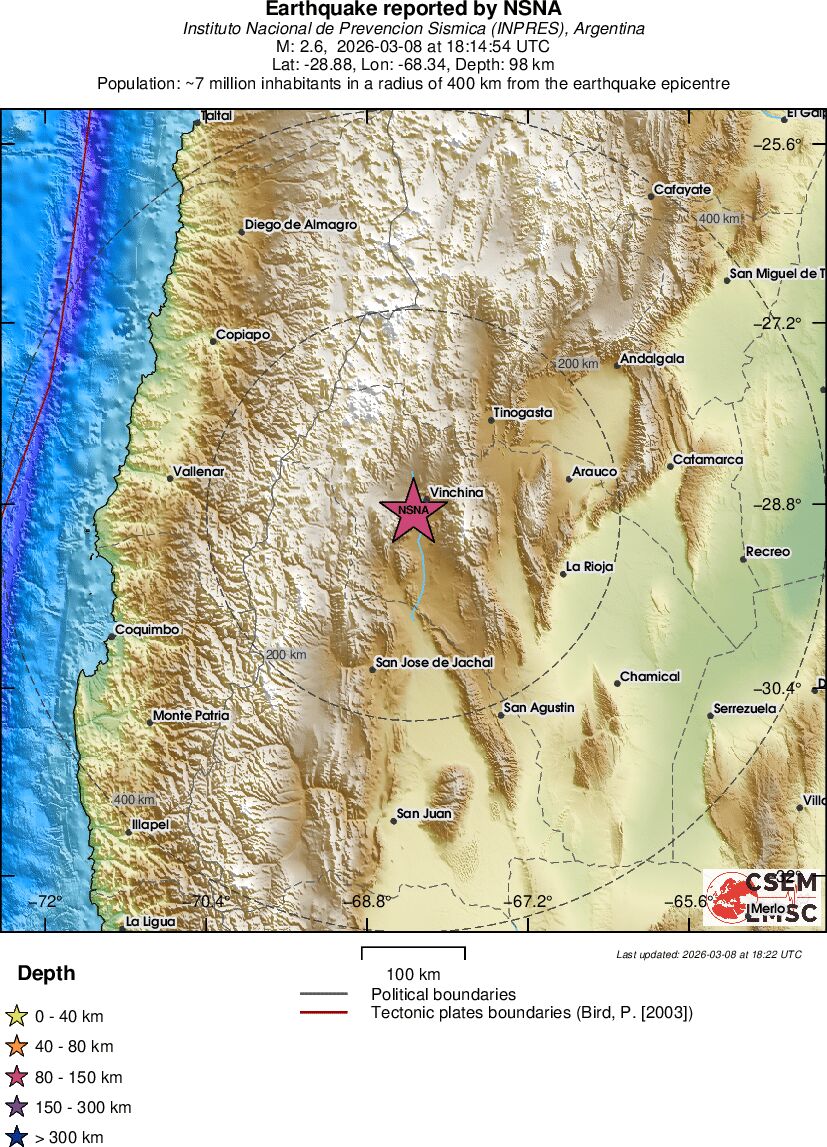 | 2.6 | 98 | 11339 | 05:14 | Σύνδεσμος | Μικρός σεισμός - LA RIOJA, ARGENTINA - σήμερα |