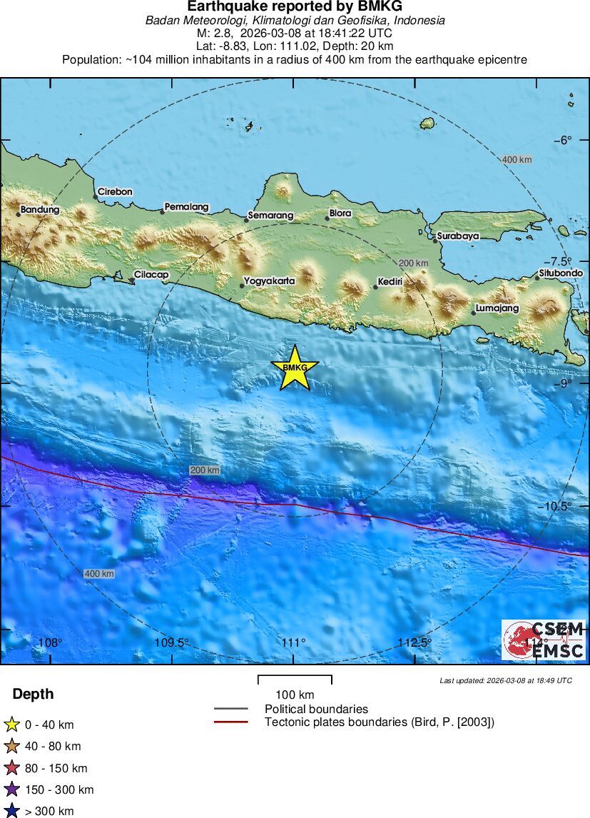 | 2.8 | 20 | 5145 | 05:41 | Σύνδεσμος | Μικρός σεισμός - JAVA, INDONESIA - σήμερα |