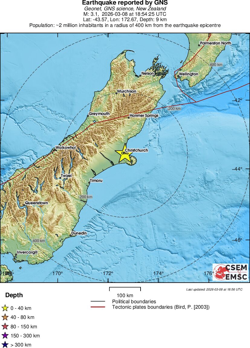 | 3.1 | 9 | 2007 | 05:54 | Σύνδεσμος | Μικρός σεισμός - SOUTH ISLAND OF NEW ZEALAND - σήμερα |