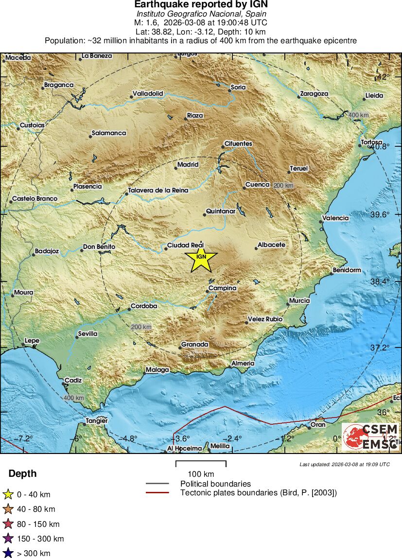 | 1.6 | 9.9 | 17577 | 06:00 | Σύνδεσμος | Μικρός σεισμός - SPAIN - σήμερα |