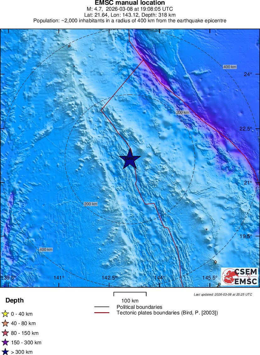 | 4.7 | 303.6 | 7030 | 06:08 | Σύνδεσμος | Ελαφρύς σεισμός - MARIANA ISLANDS REGION - σήμερα |