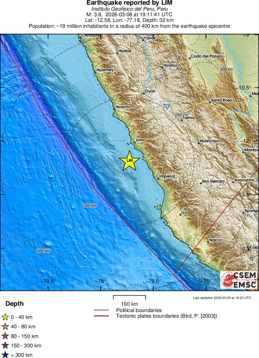 | 3.8 | 32 | 12417 | 06:11 | Σύνδεσμος | Μικρός σεισμός - NEAR COAST OF CENTRAL PERU - σήμερα |