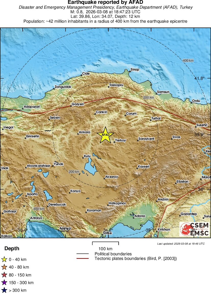 | 0.8 | 11.6 | 14600 | 05:47 | Σύνδεσμος | Μικρός σεισμός - CENTRAL TURKEY - σήμερα |