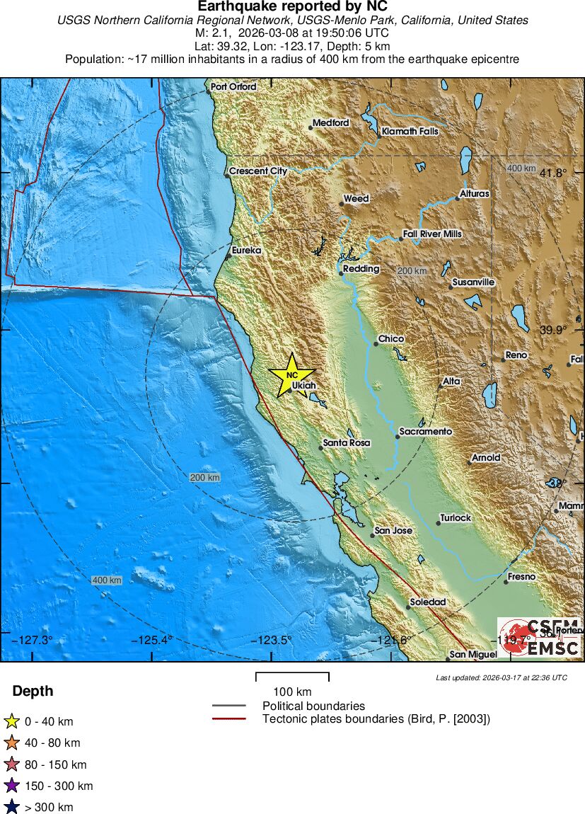 | 2.3 | 4.4 | 12662 | 06:50 | Σύνδεσμος | Μικρός σεισμός - NORTHERN CALIFORNIA - σήμερα |
