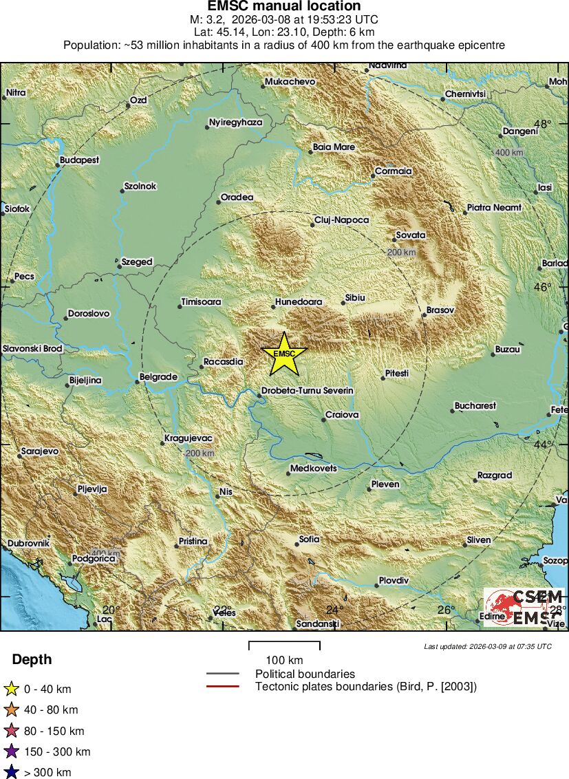 | 3.3 | 15 | 15640 | 06:53 | Σύνδεσμος | Μικρός σεισμός - ROMANIA - σήμερα |