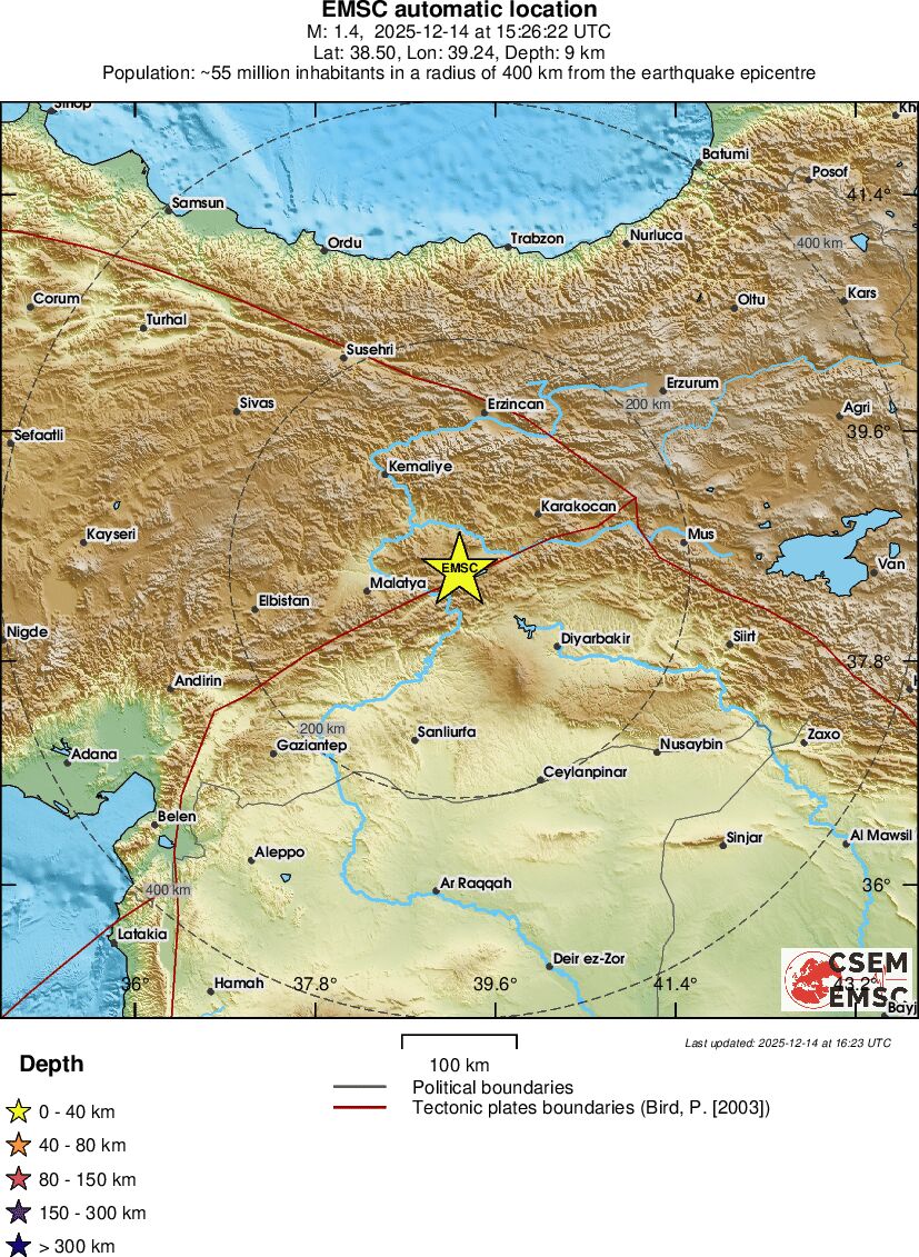 | 1.4 | 8.8 | 8782 | 02:26 | Linkki | Pieni maanjäristys - EASTERN TURKEY - Tänään |
