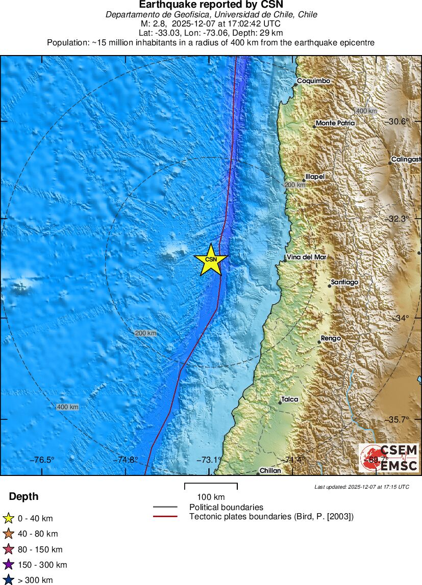 | 2.8 | 29 | 6660 | 04:02 | Link | Slabe Trzęsienie - OFF COAST OF VALPARAISO, CHILE - Dzisiaj |
