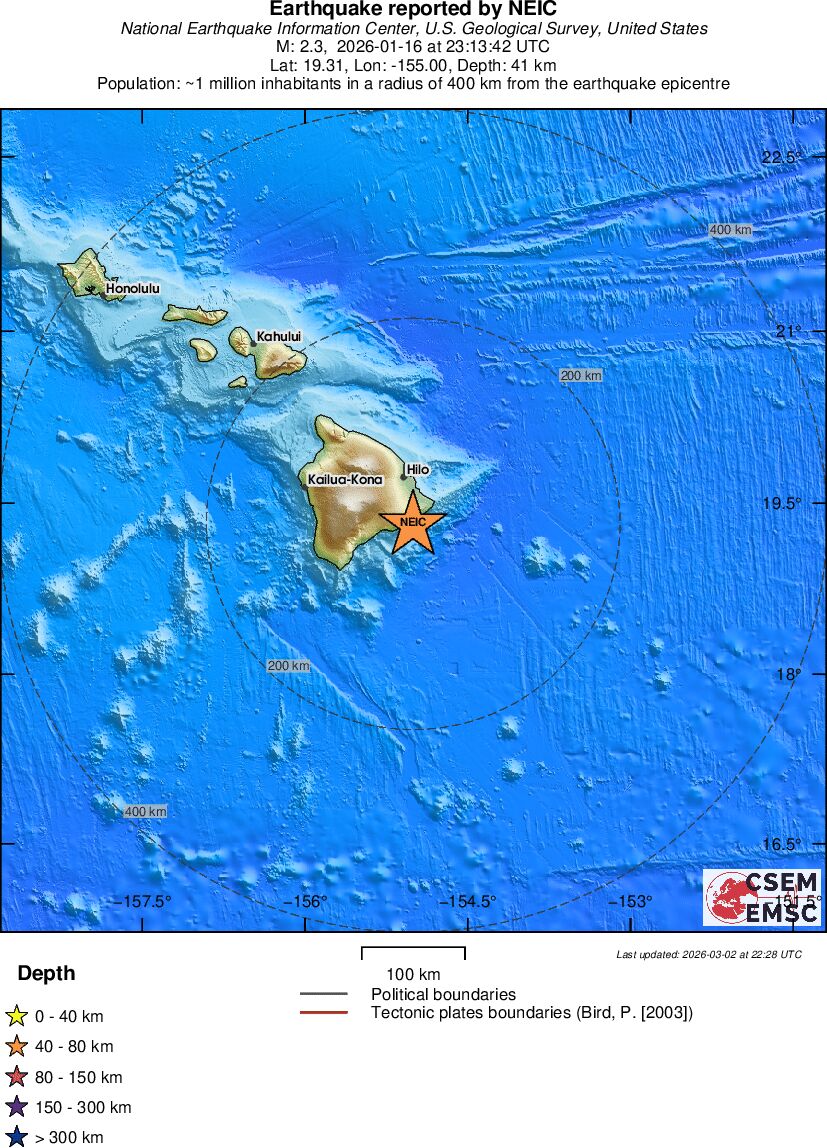| 2.1 | 34.7 | 5545 | 10:13 | Länk | Mindre jordbävning - HAWAII REGION, HAWAII - I dag |