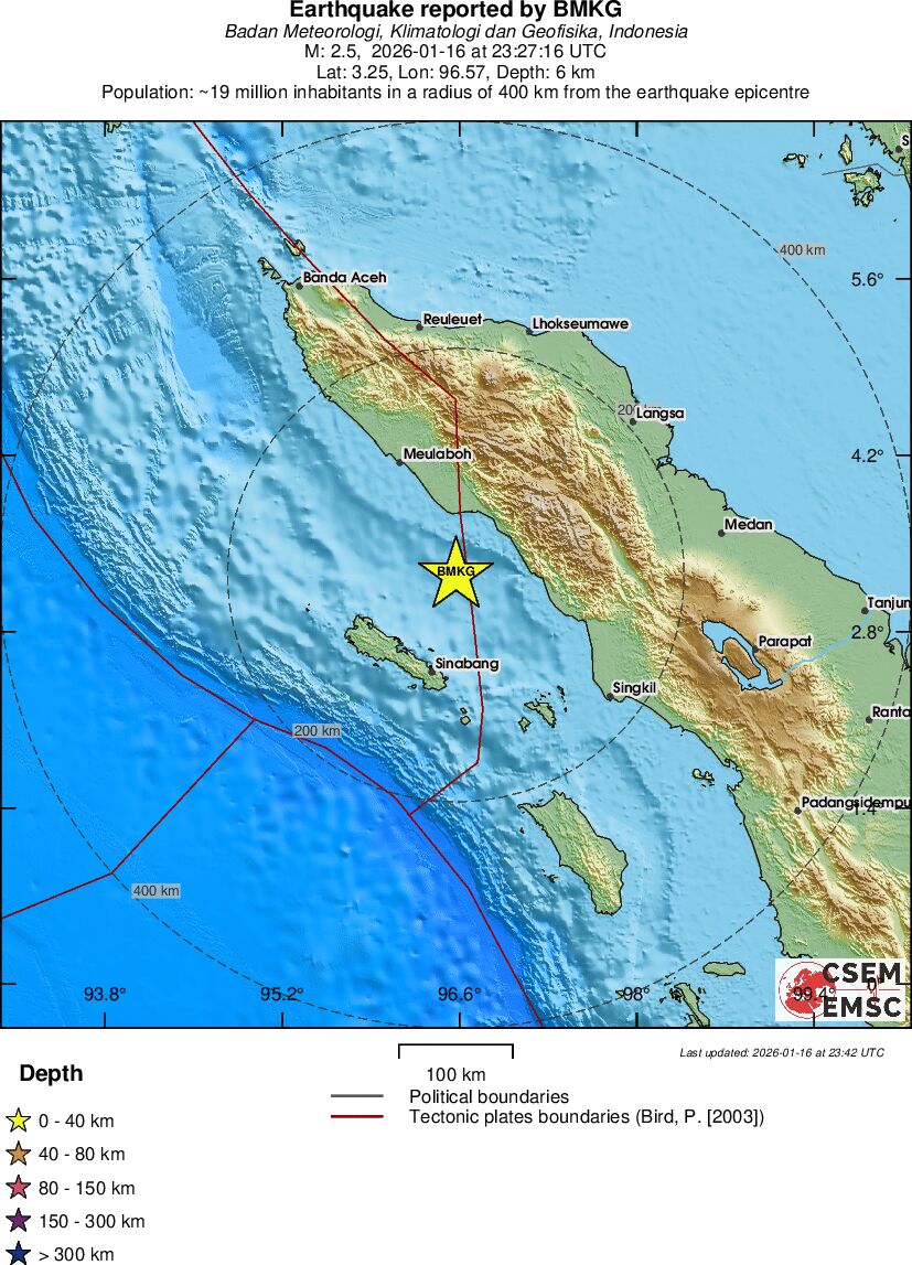 | 2.5 | 6 | 4474 | 10:27 | Länk | Mindre jordbävning - NORTHERN SUMATRA, INDONESIA - I dag |