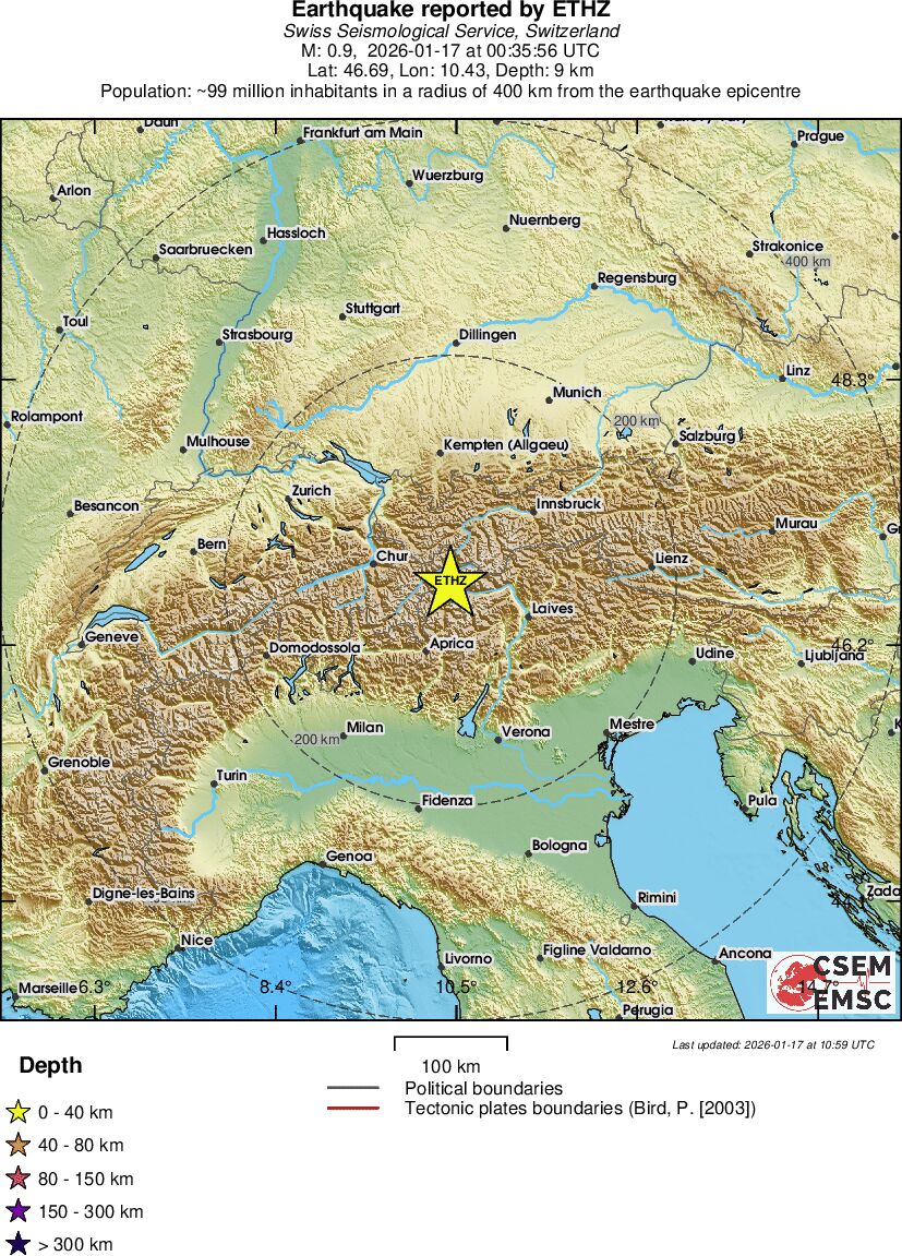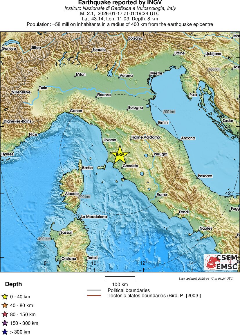 | 1.2 | 10.9 | 10338 | 12:45 | Länk | Mindre jordbävning - NORTHERN ITALY - I dag |