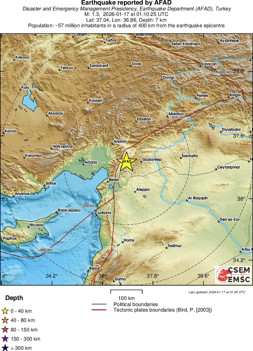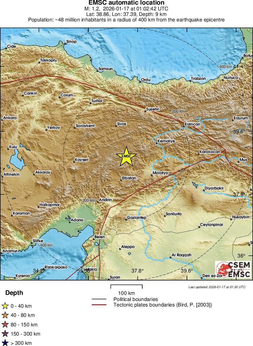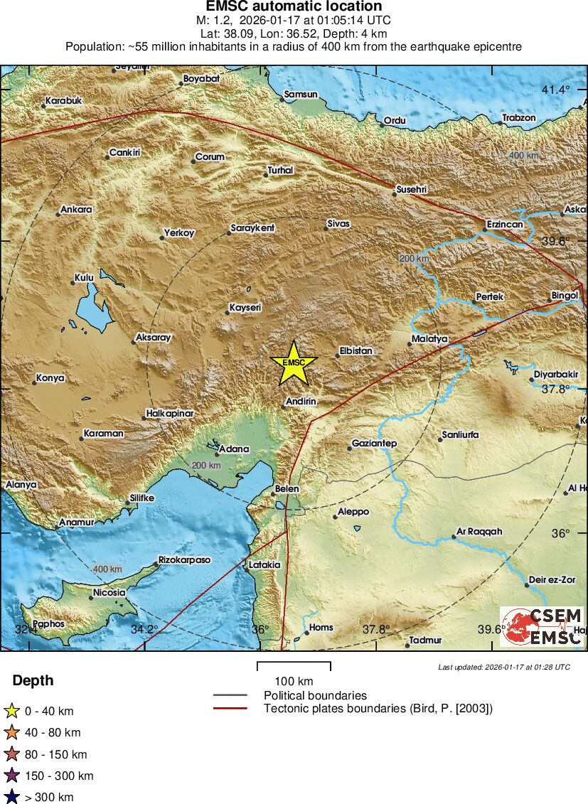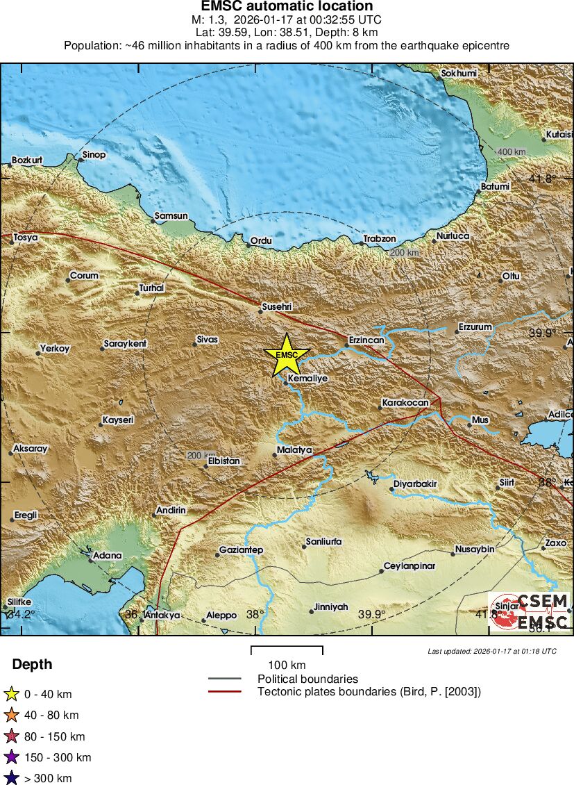 | 1.3 | 7.8 | 8851 | 11:32 | Länk | Mindre jordbävning - EASTERN TURKEY - I dag |