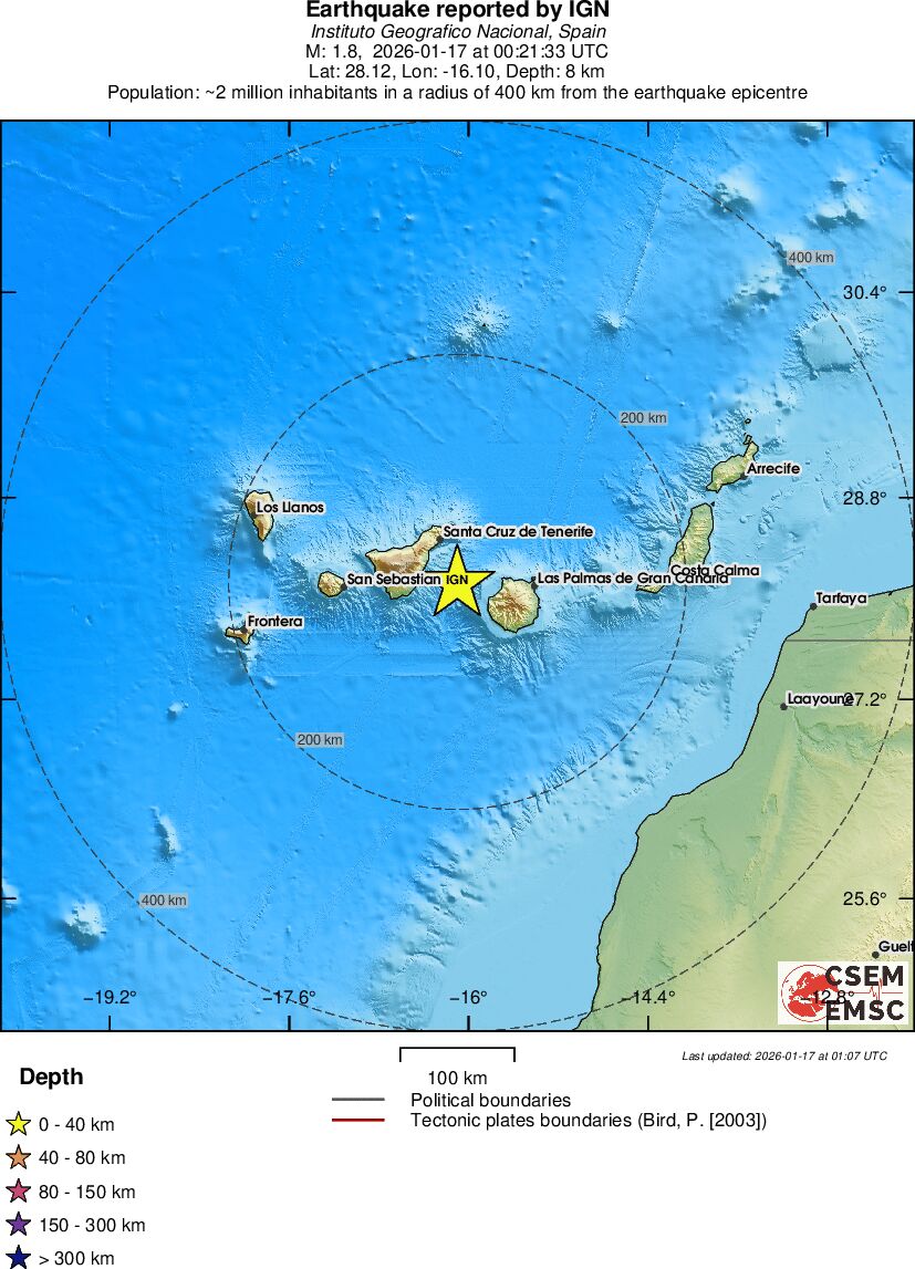 | 1.8 | 7.8 | 11163 | 11:21 | Länk | Mindre jordbävning - CANARY ISLANDS, SPAIN REGION - I dag |