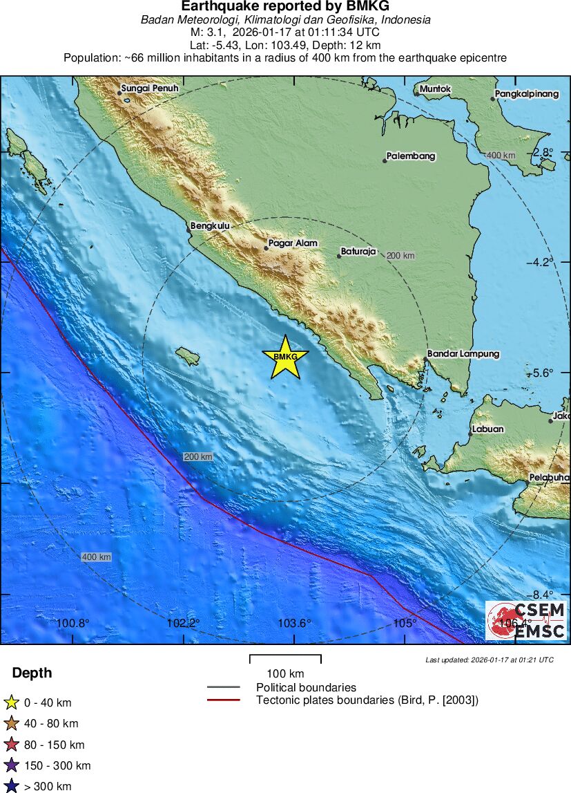 | 3.1 | 12 | 3708 | 12:11 | Länk | Mindre jordbävning - SOUTHERN SUMATRA, INDONESIA - I dag |