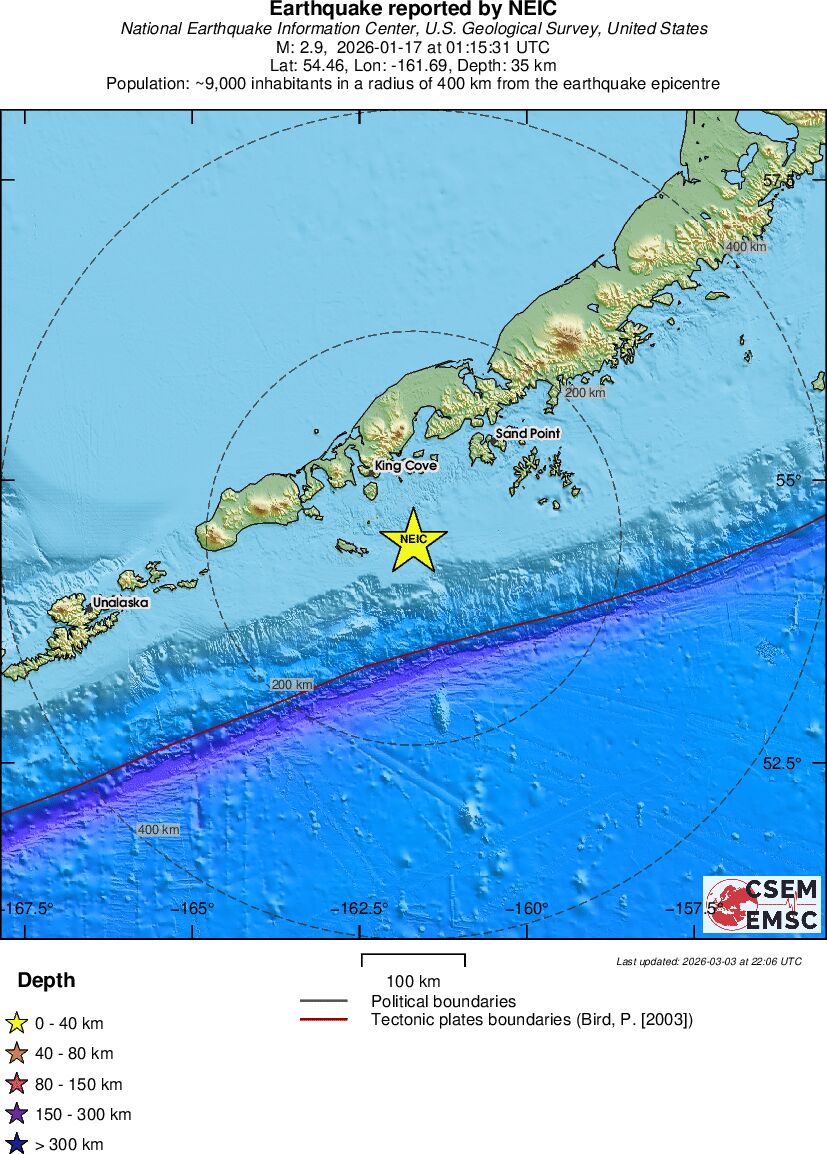 | 2.9 | 35 | 7256 | 12:15 | Länk | Mindre jordbävning - ALASKA PENINSULA - I dag |