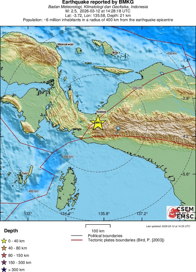 | 3.4 | 29 | 2761 | 01:42 | Vezu | Mali zemljotres - PAPUA, INDONESIA - Danas |