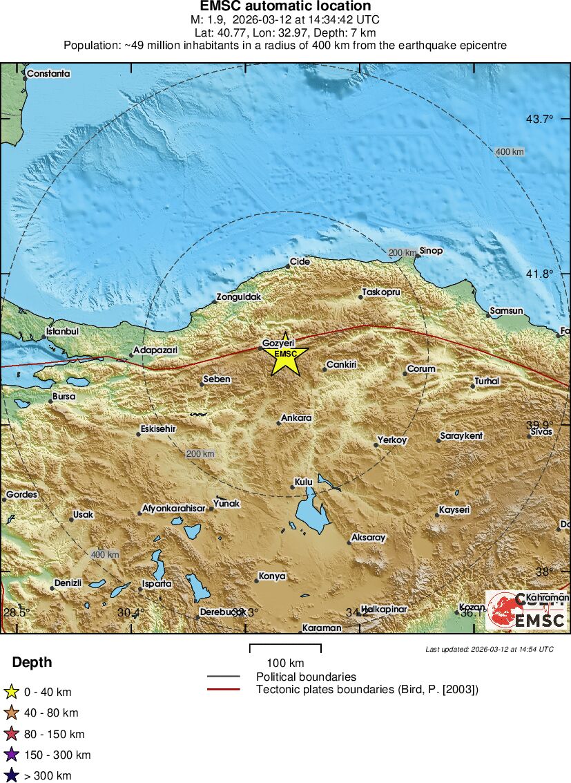 | 3.9 | 7.7 | 9122 | 01:49 | Vezu | Mali zemljotres - CENTRAL TURKEY - Danas |