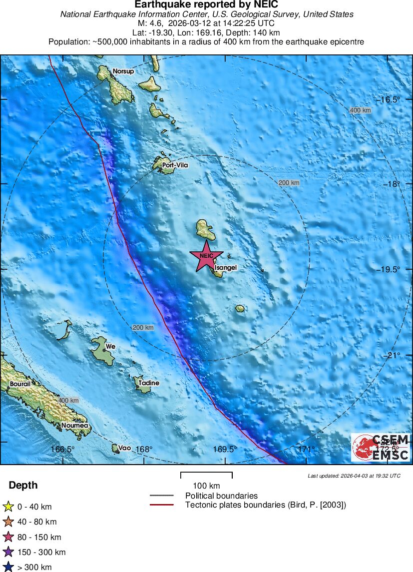 | 4.6 | 151 | 1960 | 01:22 | Vezu | Lagan zemljotres - VANUATU - Danas |