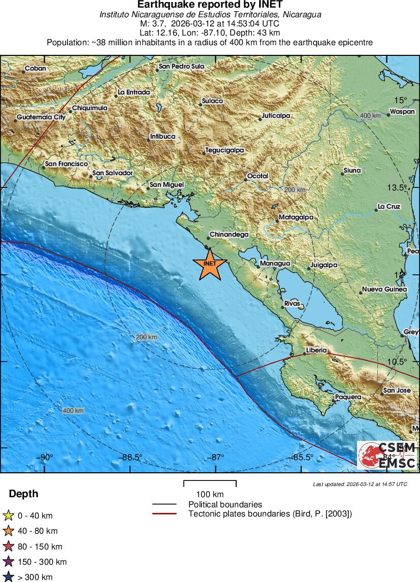 | 3.7 | 43 | 8552 | 01:53 | Vezu | Mali zemljotres - NEAR COAST OF NICARAGUA - Danas |