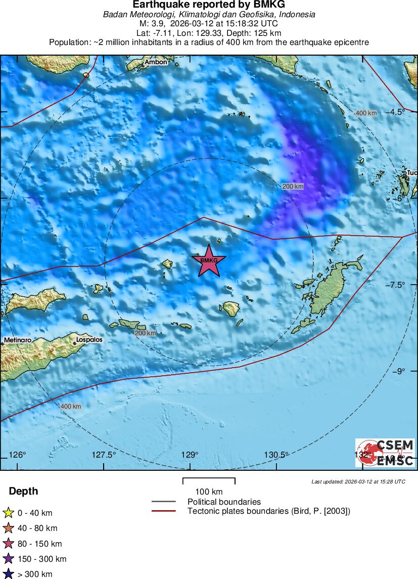 | 3.9 | 125 | 2641 | 02:18 | Vezu | Mali zemljotres - KEPULAUAN BABAR, INDONESIA - Danas |