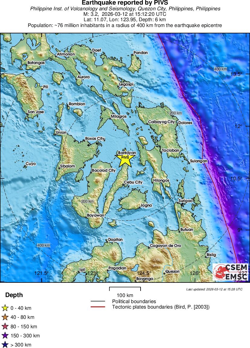 | 3.2 | 6 | 3944 | 02:12 | Vezu | Mali zemljotres - VISAYAN SEA, PHILIPPINES - Danas |