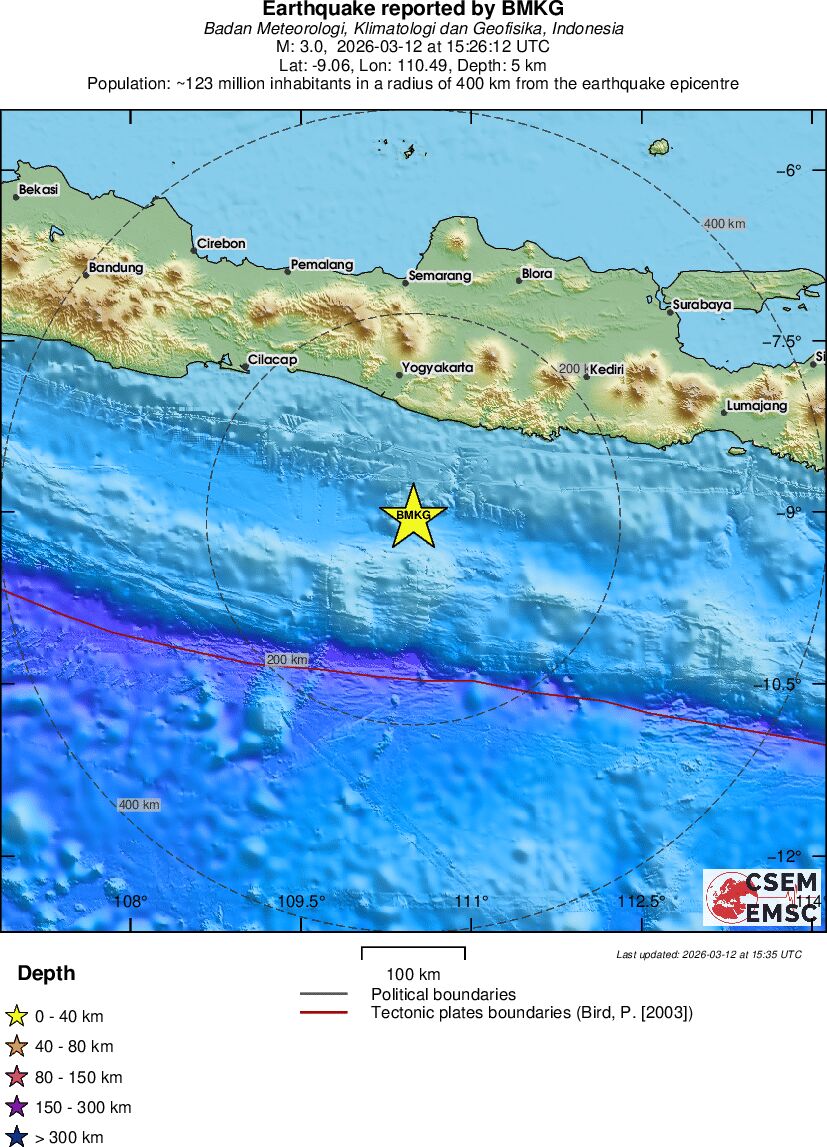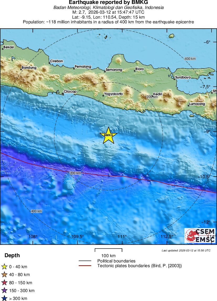 | 2.7 | 15 | 3200 | 02:47 | Vezu | Mali zemljotres - SOUTH OF JAVA, INDONESIA - Danas |