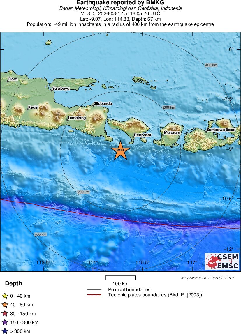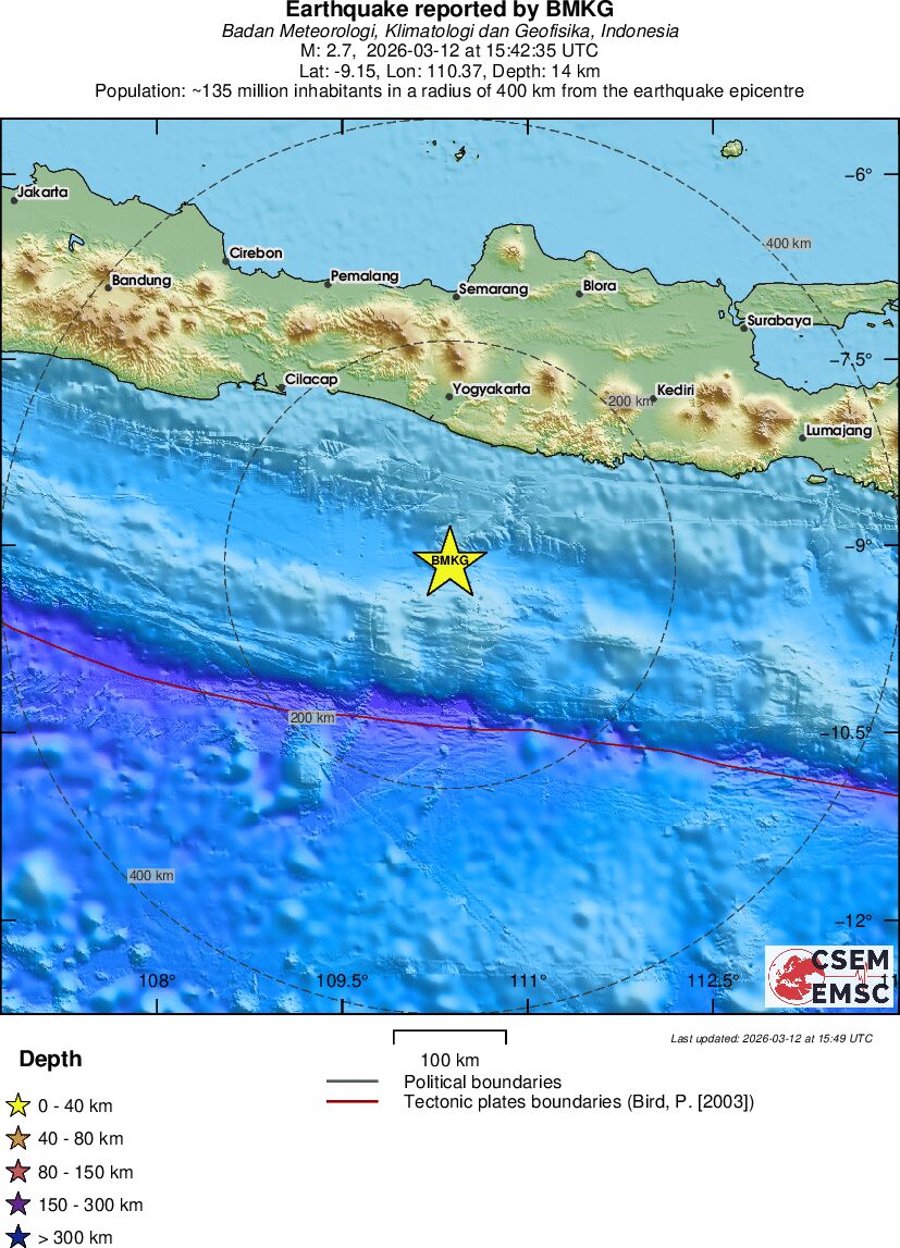| 2.7 | 14 | 3208 | 02:42 | Vezu | Mali zemljotres - SOUTH OF JAVA, INDONESIA - Danas |