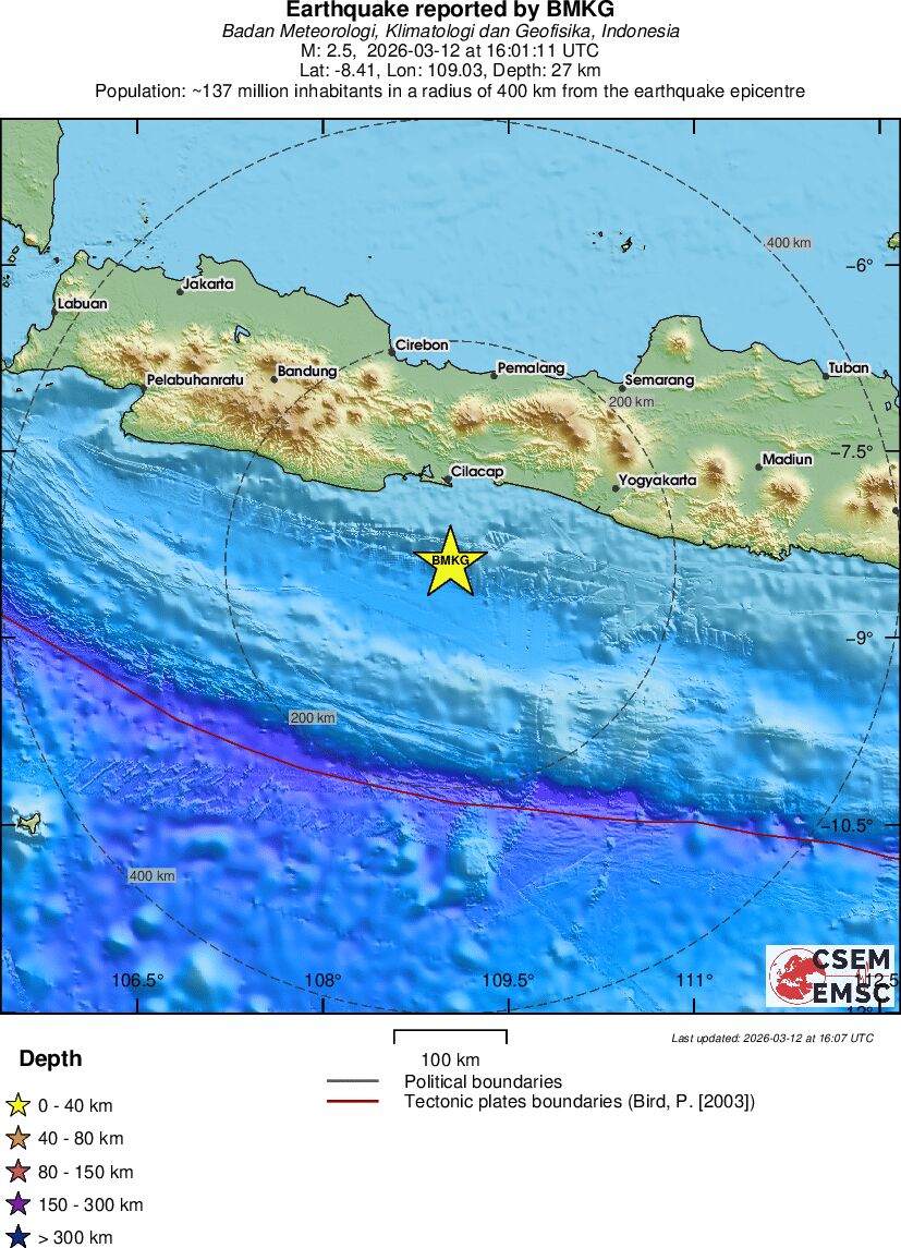 | 2.5 | 27 | 3305 | 03:01 | Vezu | Mali zemljotres - JAVA, INDONESIA - Danas |