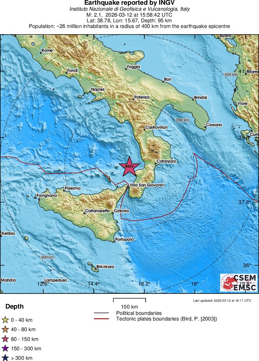 | 2.1 | 95.4 | 9957 | 02:58 | Vezu | Mali zemljotres - SICILY, ITALY - Danas |